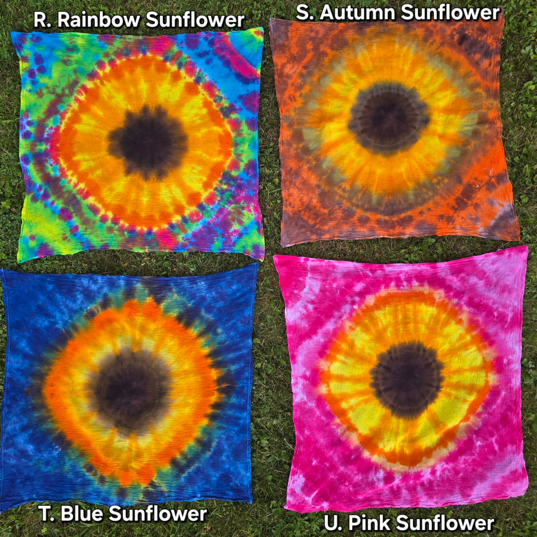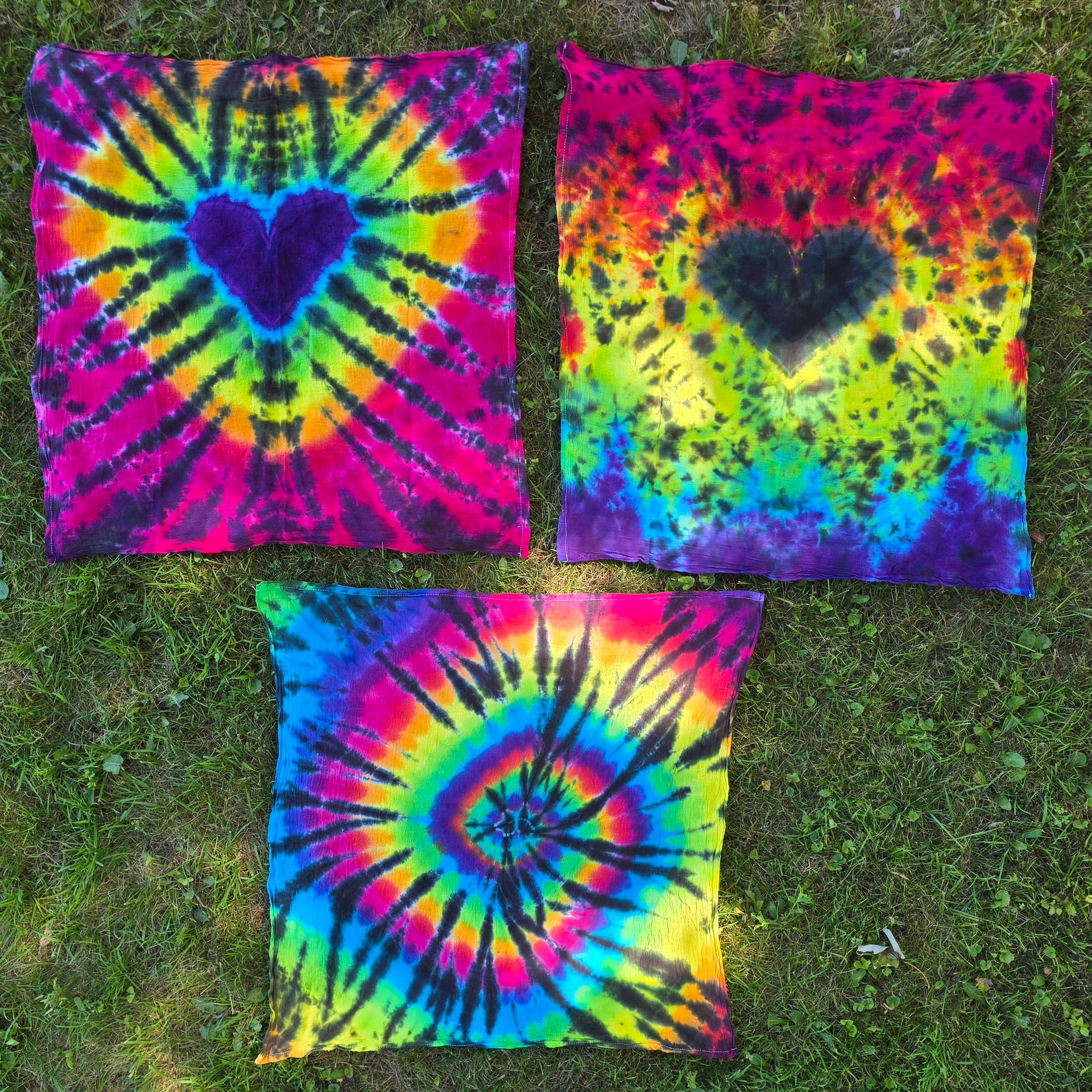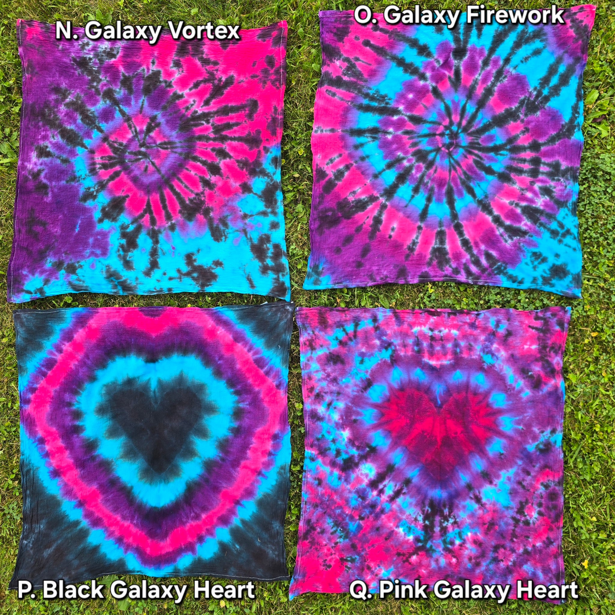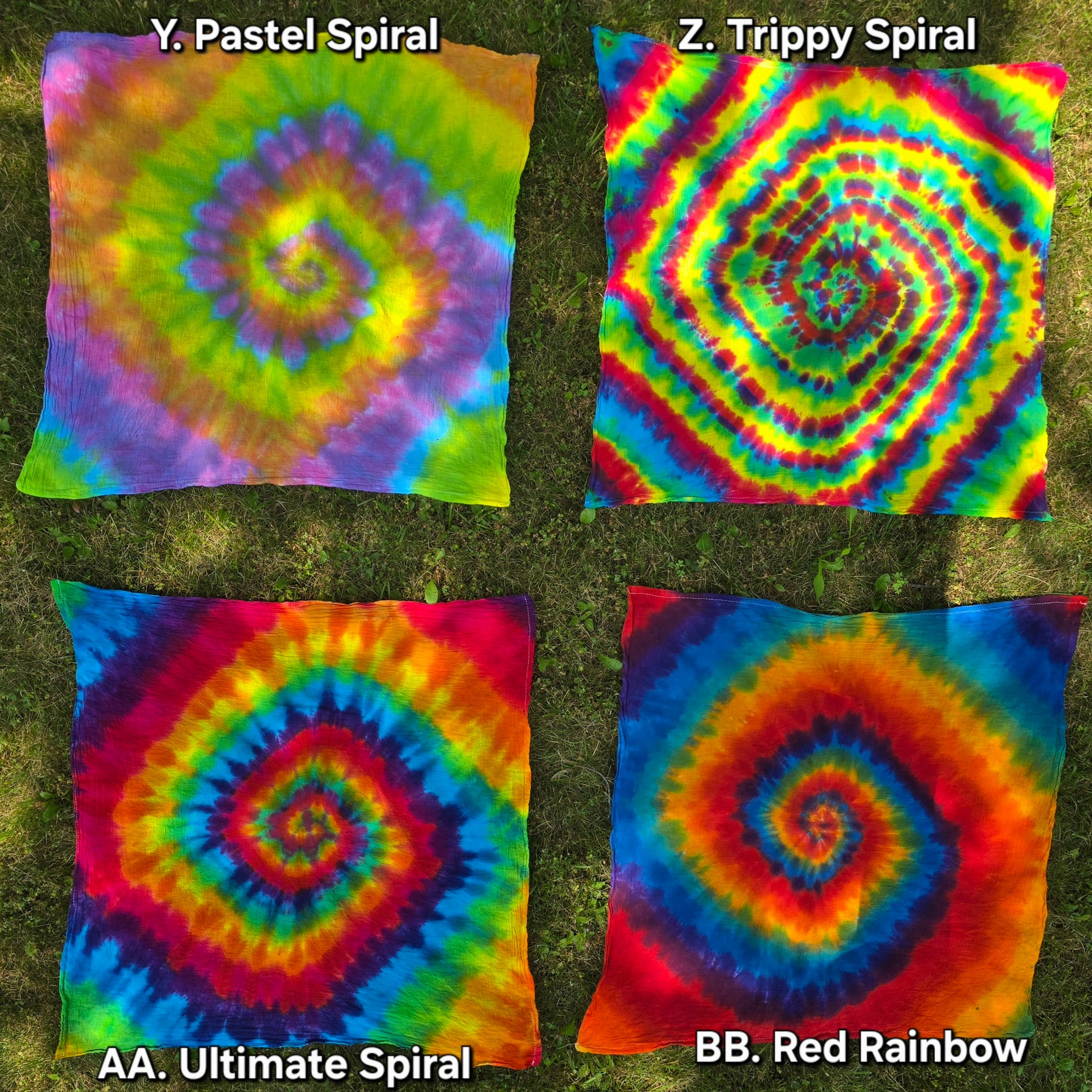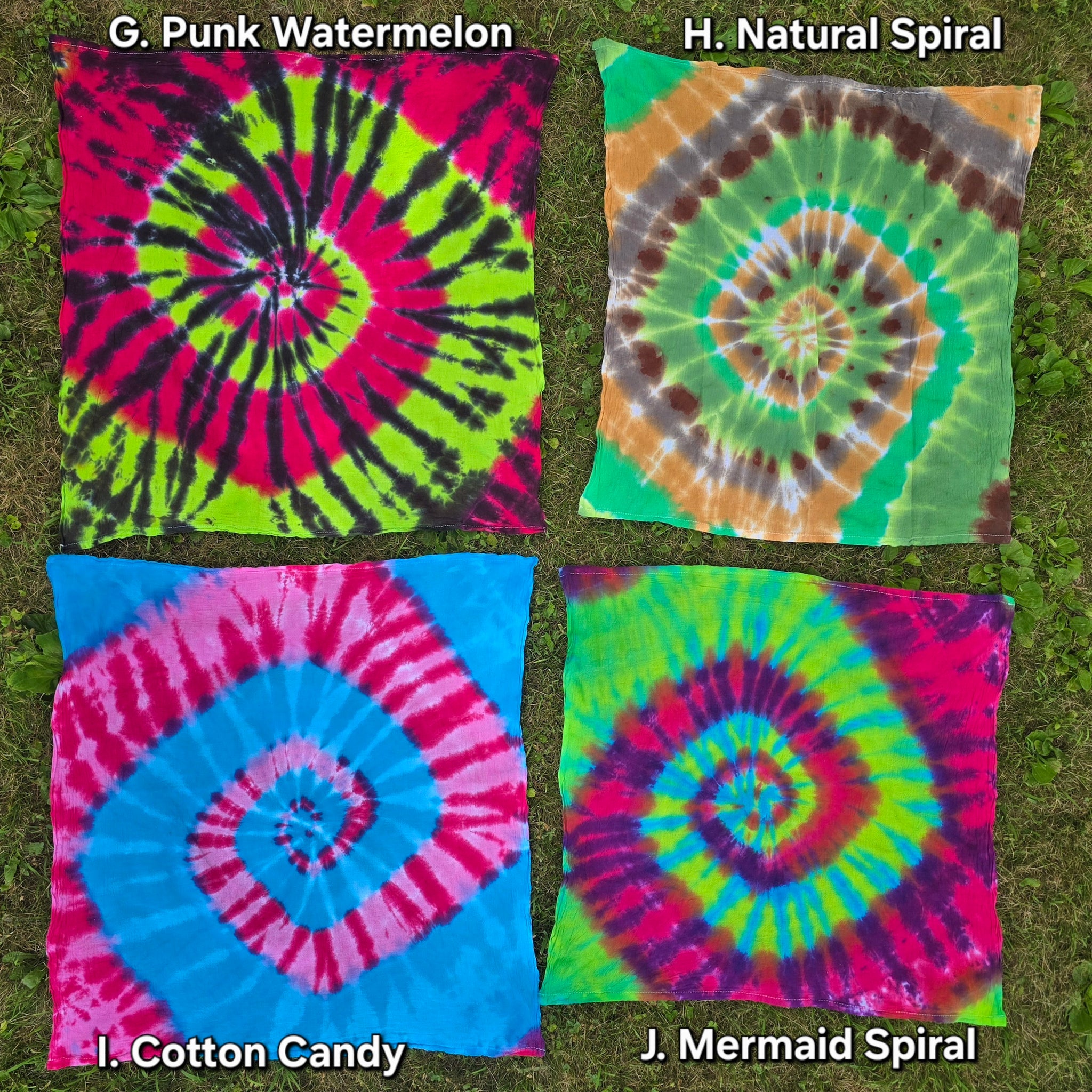 Infuse your space with a burst of color and creativity with our Hand Dyed Tie Dye Tapestries. Each 28"x28" piece is a unique work of art, perfect for adding personality anywhere. Hand Dyed and one of a kind, these tapestries are versatile and vibrant. Made out of 100% cotton absorbent tea towel material, they can even be used as a kitchen towel!