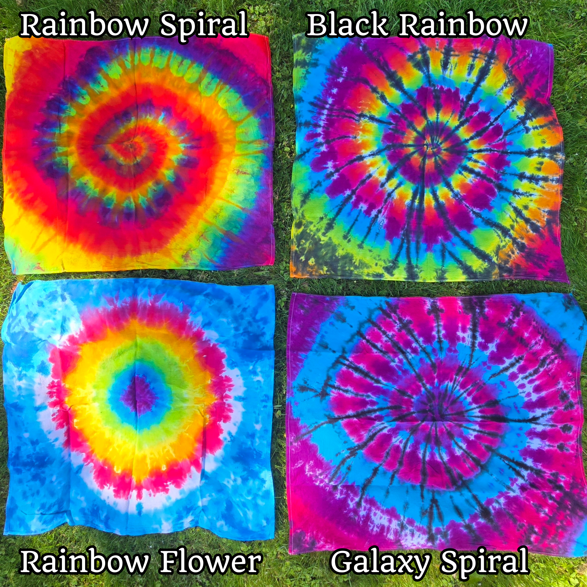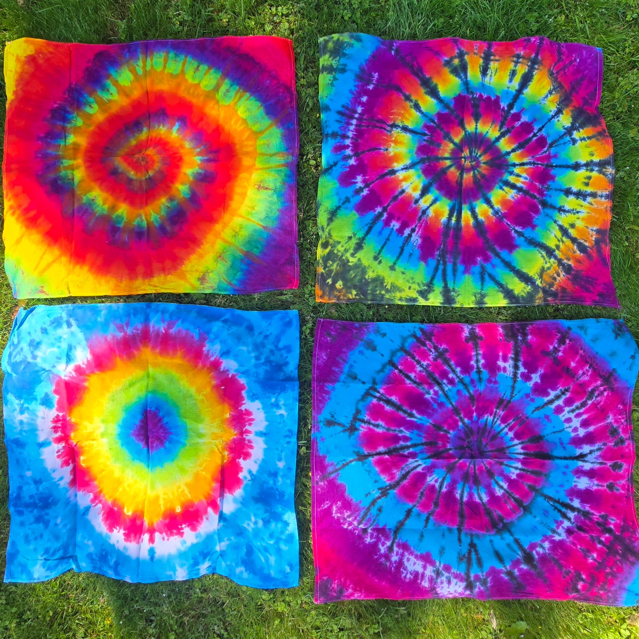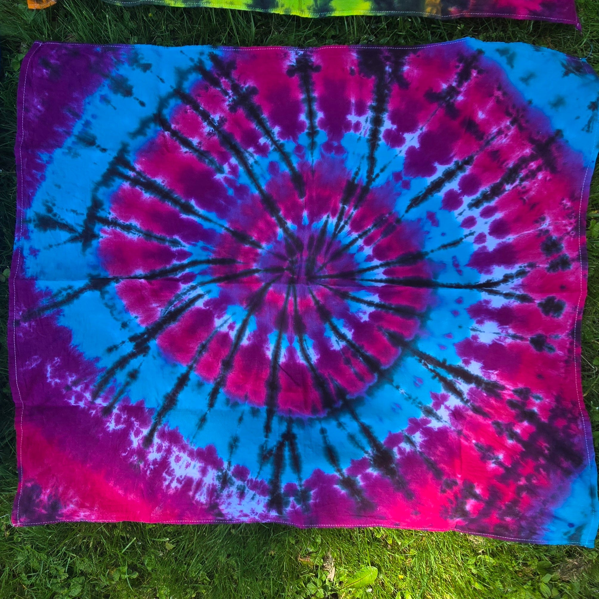 Infuse your space with a burst of color and creativity with our Hand Dyed Tie Dye Tapestries. Each 35"x32" piece is a unique work of art, perfect for adding personality anywhere. Hand Dyed and one of a kind, these tapestries are versatile and vibrant. Made out of 100% cotton absorbent tea towel material, they can even be used as a kitchen towel!