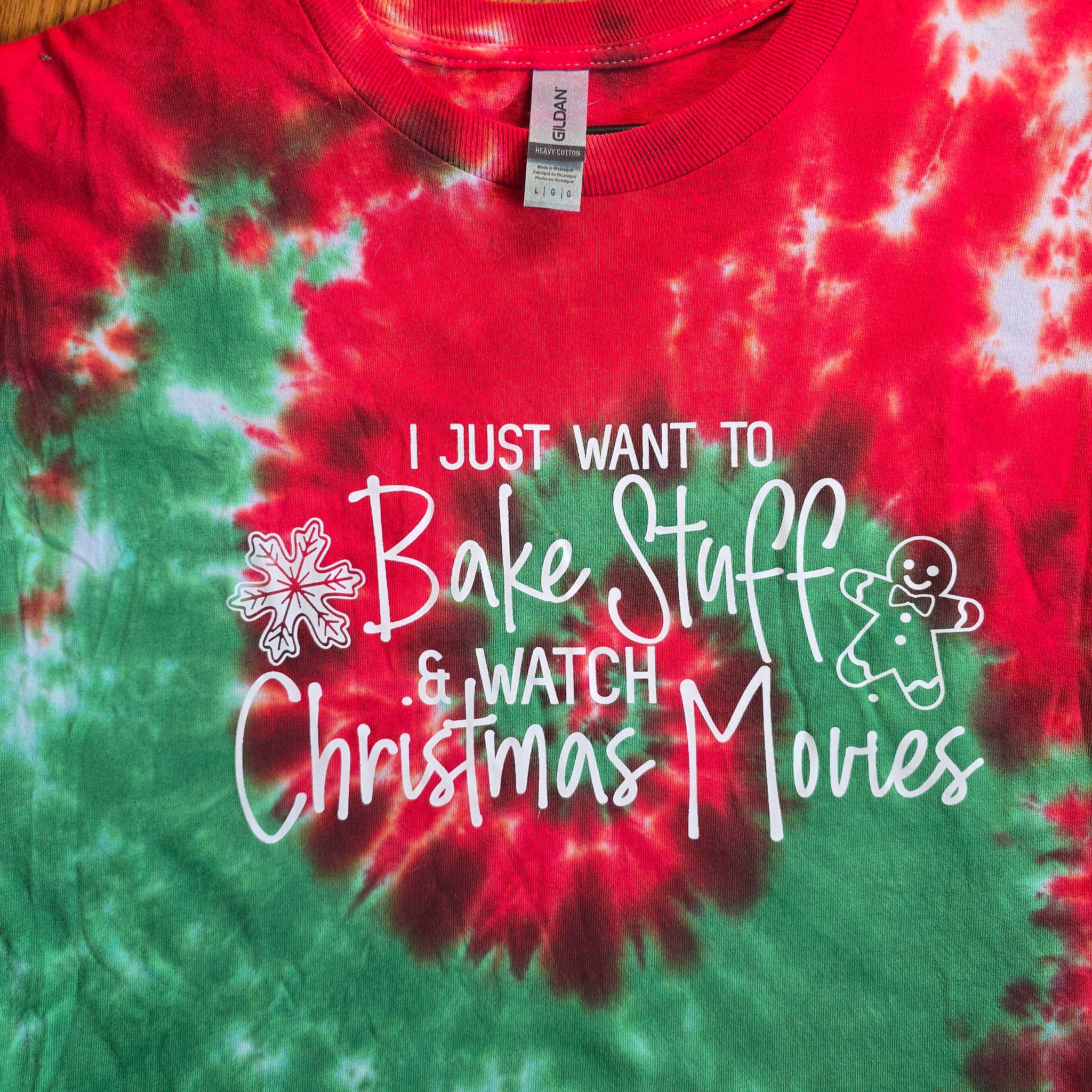 I think we all just want to Bake Stuff and Watch Christmas Movies instead of our responsibilities! Embrace the cozy vibes of the holiday season with our "I Just Want to Bake Things and Watch Christmas Movies" tie-dye shirt! Featuring a festive red and green design, this tee is perfect for those who love to indulge in holiday baking while enjoying their favorite Christmas films.