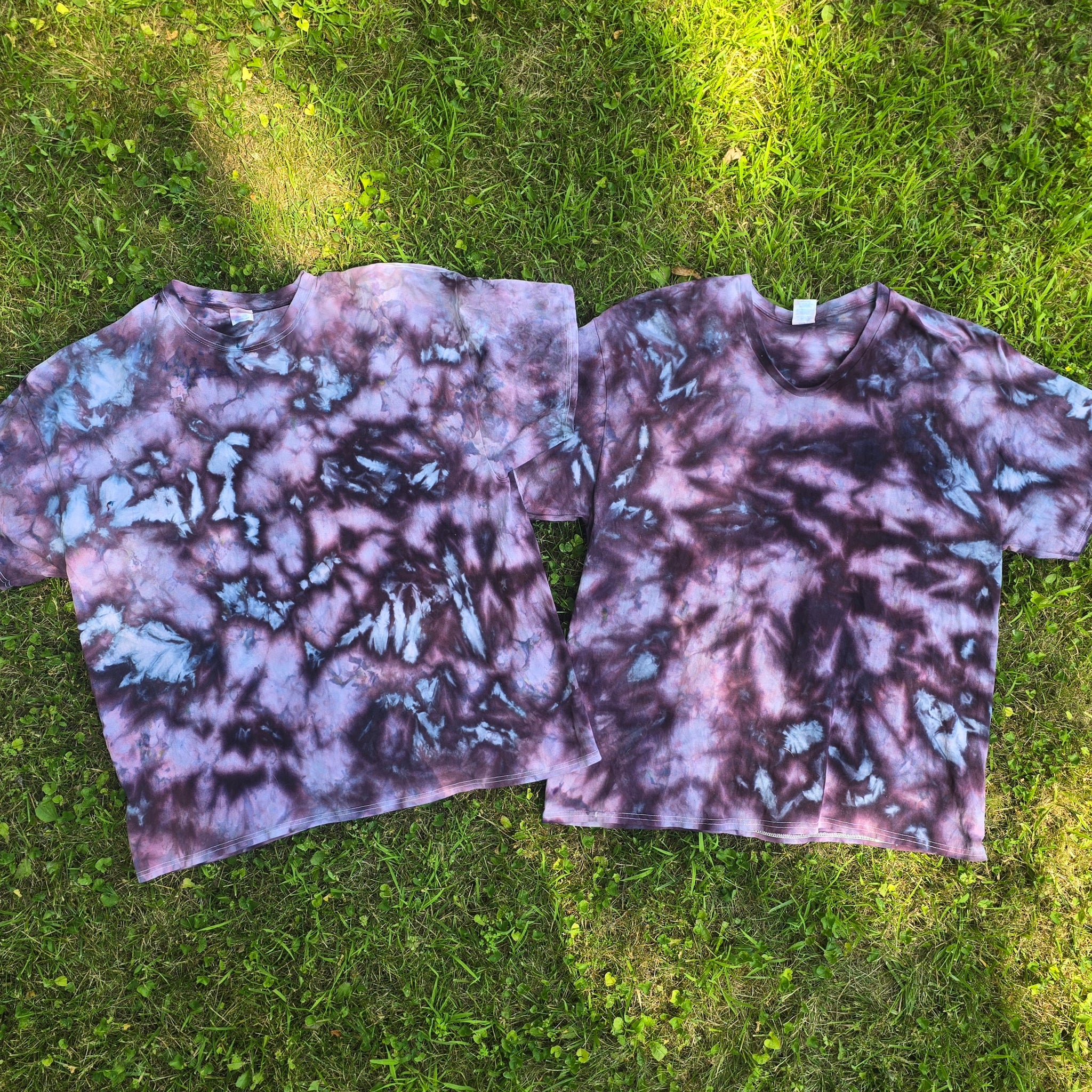 Please refer to the photos for examples of how your garment may look—no two pieces are alike, making your Cosmic Amethyst Ice Dye truly special!