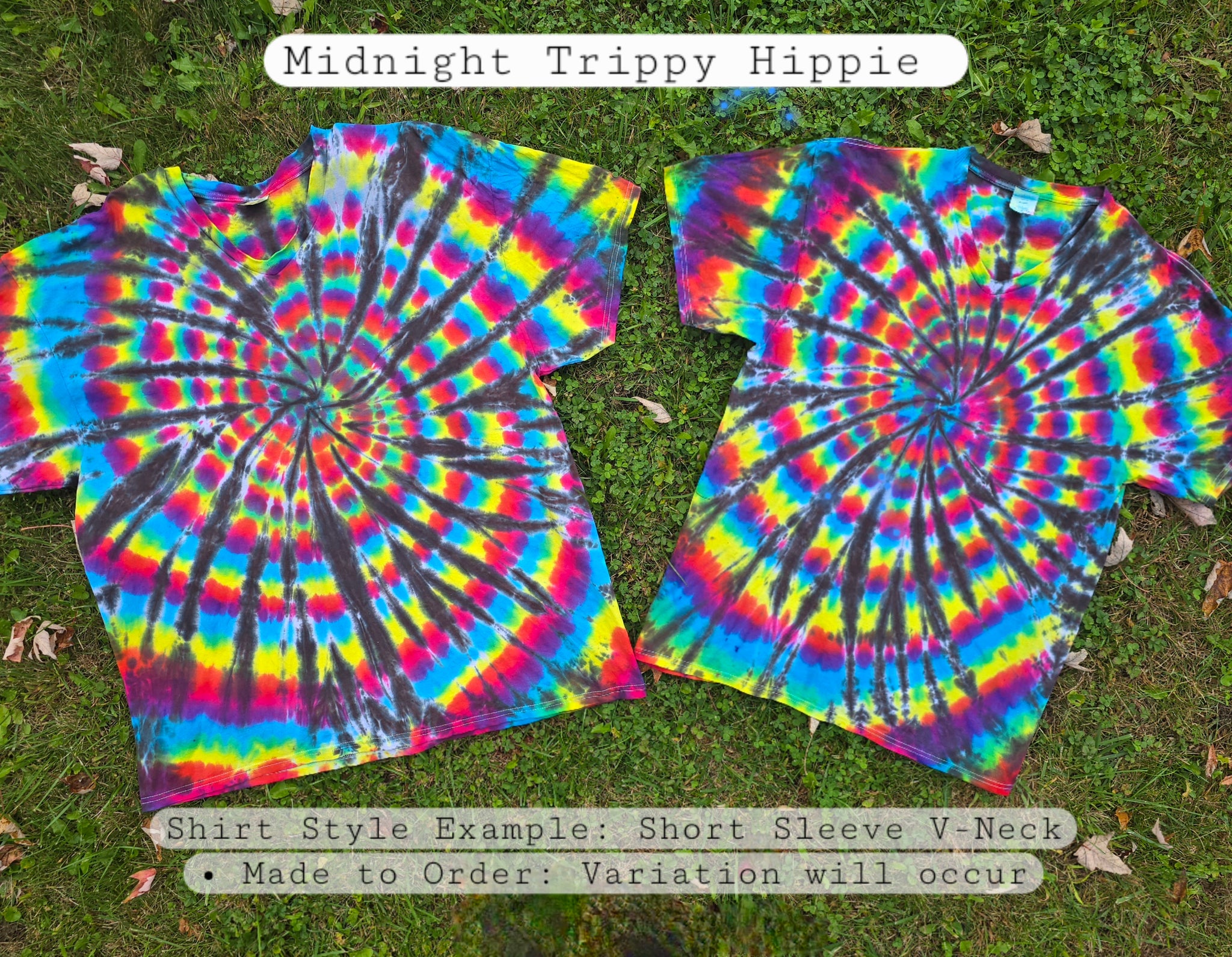 Please refer to the photos for examples of how your garment may look—no two pieces are alike, making your Midnight Trippy Hippie truly special!