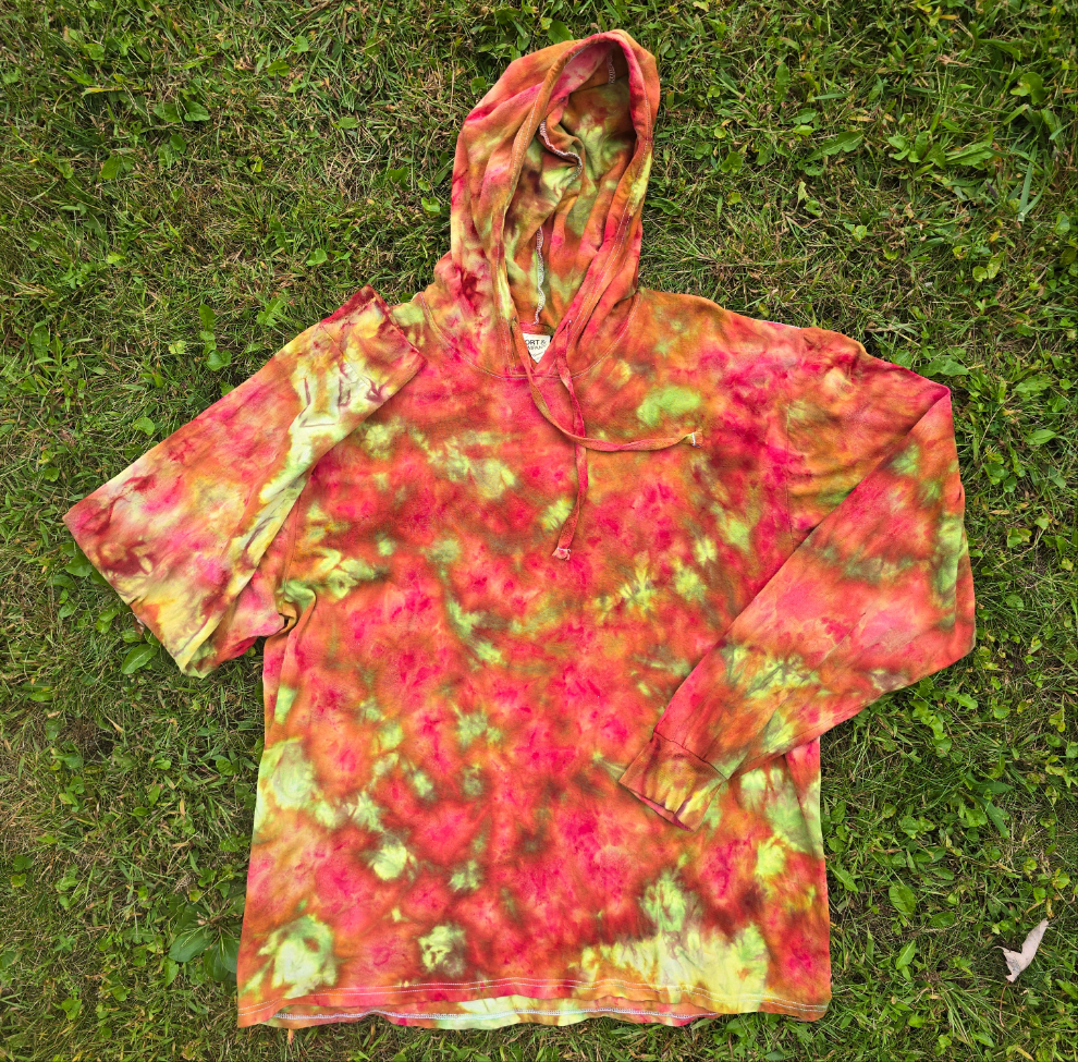 Please refer to the photos for examples of how your garment may look—no two pieces are alike, making your Phoenix Fire Ice Dye truly special!