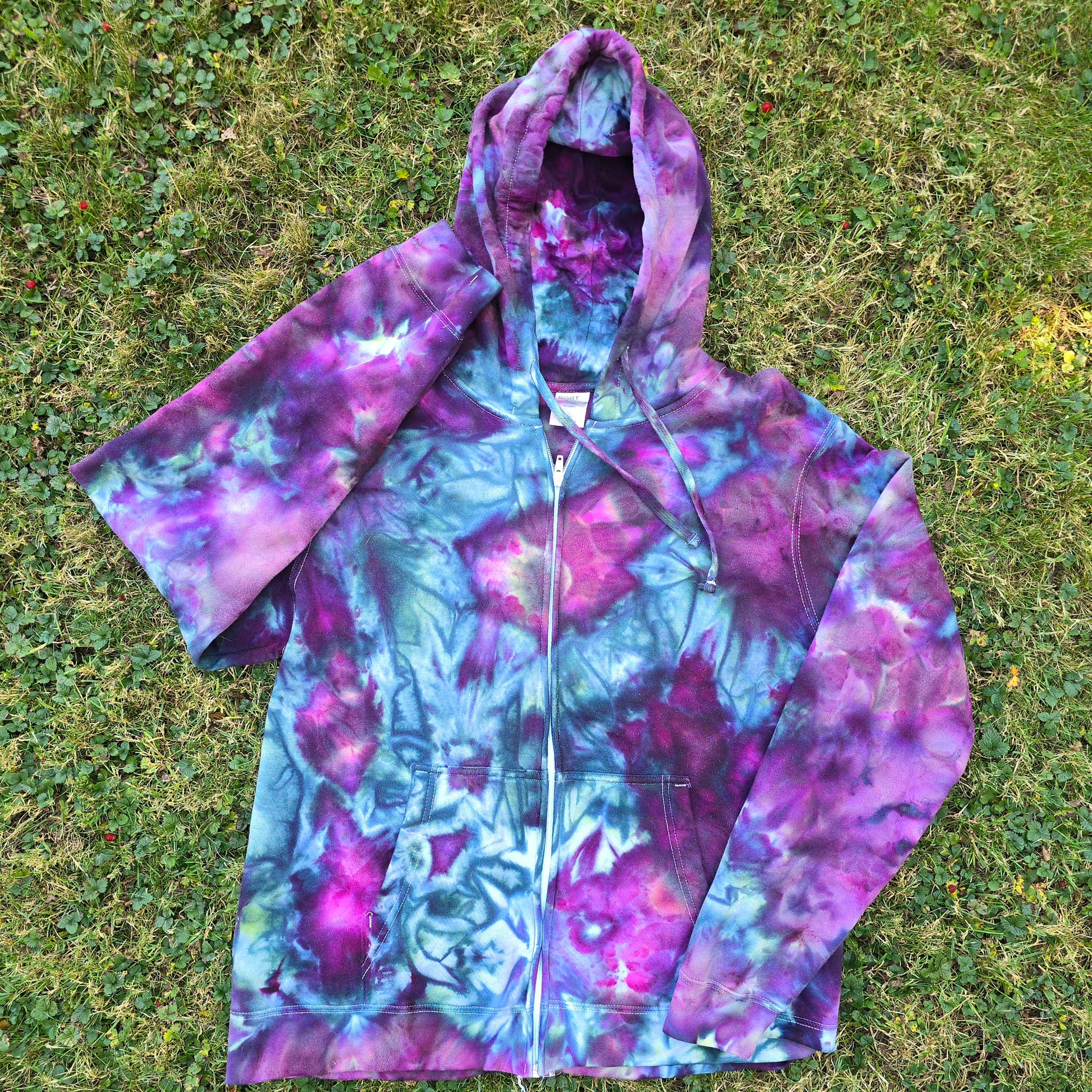 This design is created using only one dye color! The melting ice causes it to split into stunning, multi-tone patterns—meaning every shirt comes out completely unique. I have very little control over how the colors separate, so please refer to the photos for examples of what your piece might look like!
